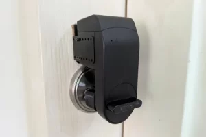 まず検討したいのが、物理的な鍵を持ち歩く必要をなくす「スマートロック」の導入です。玄関のドアの内側にあるサムターン(つまみ)に専用の機器を取り付けることで、スマートフォンを鍵として使用できるようになります。